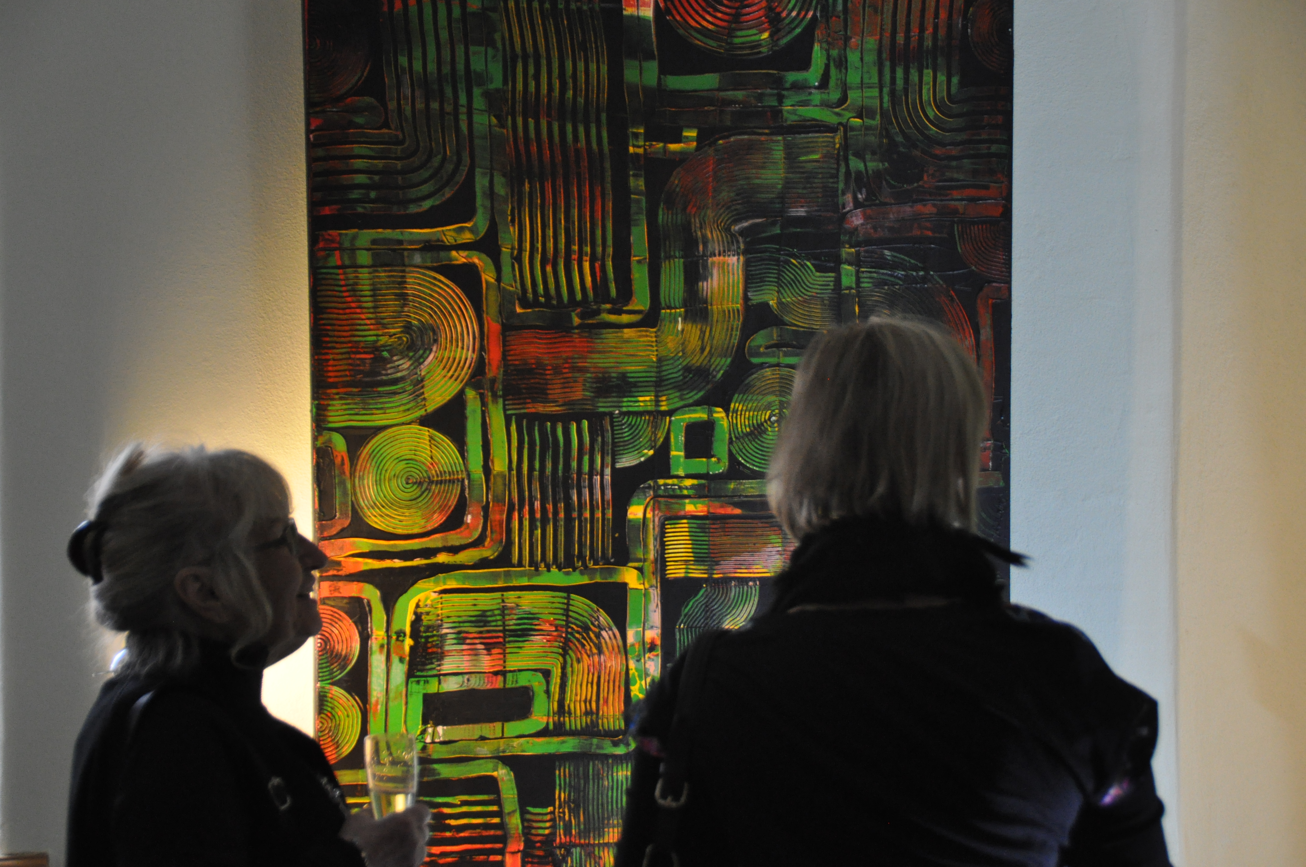 Eine gut besuchte Vernissage der Ausstellung in der Galerie m beck in Homburg/ Saar. Bis zum 26. Juli werden Bilder verschiedener Künstler im Rahmen des Projekts „Plain White Canvas“ zu sehen sein.